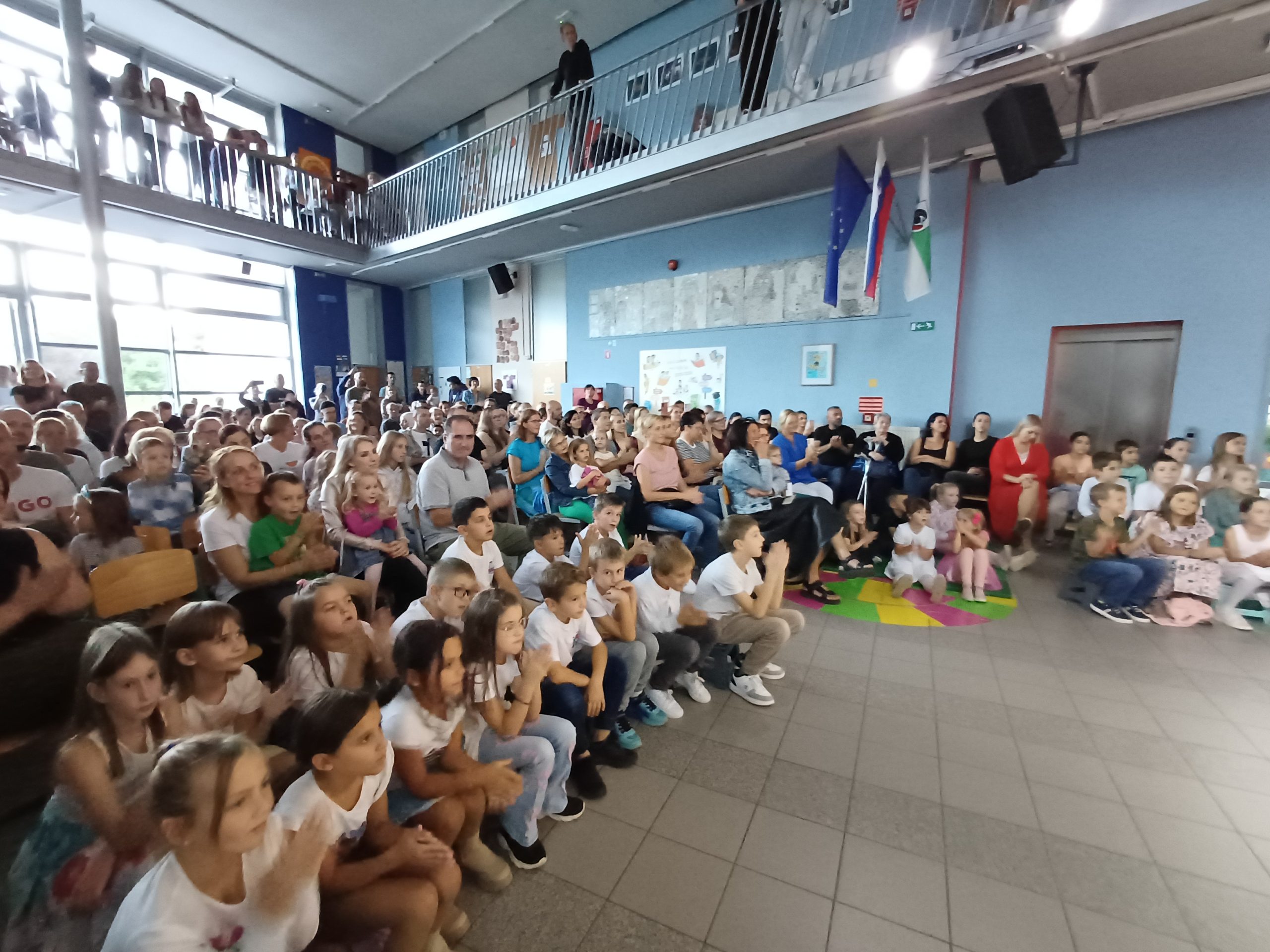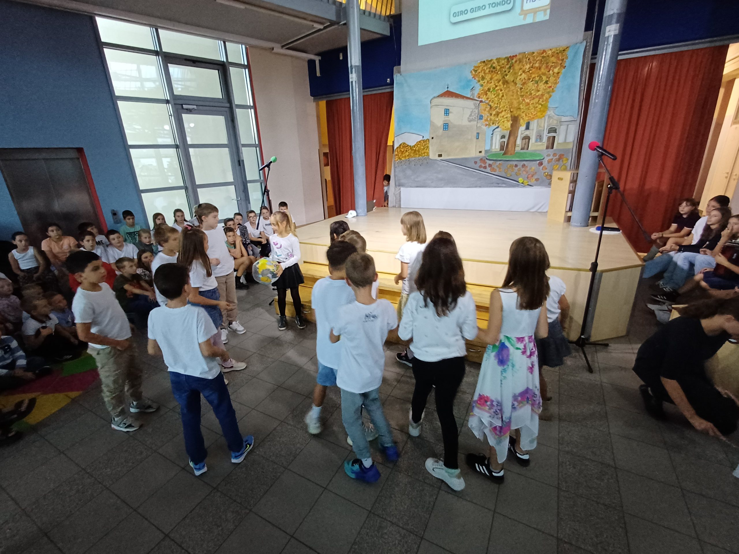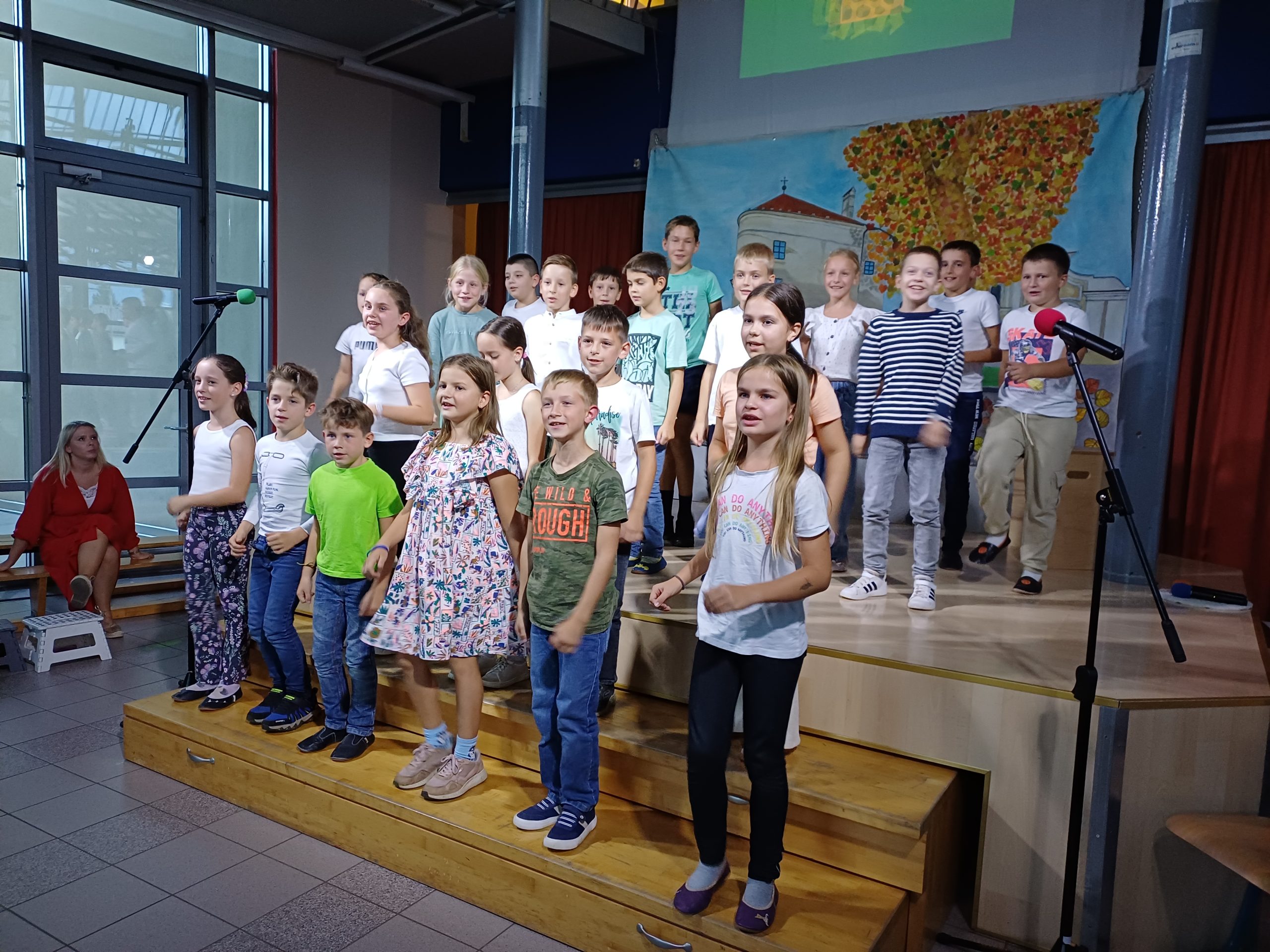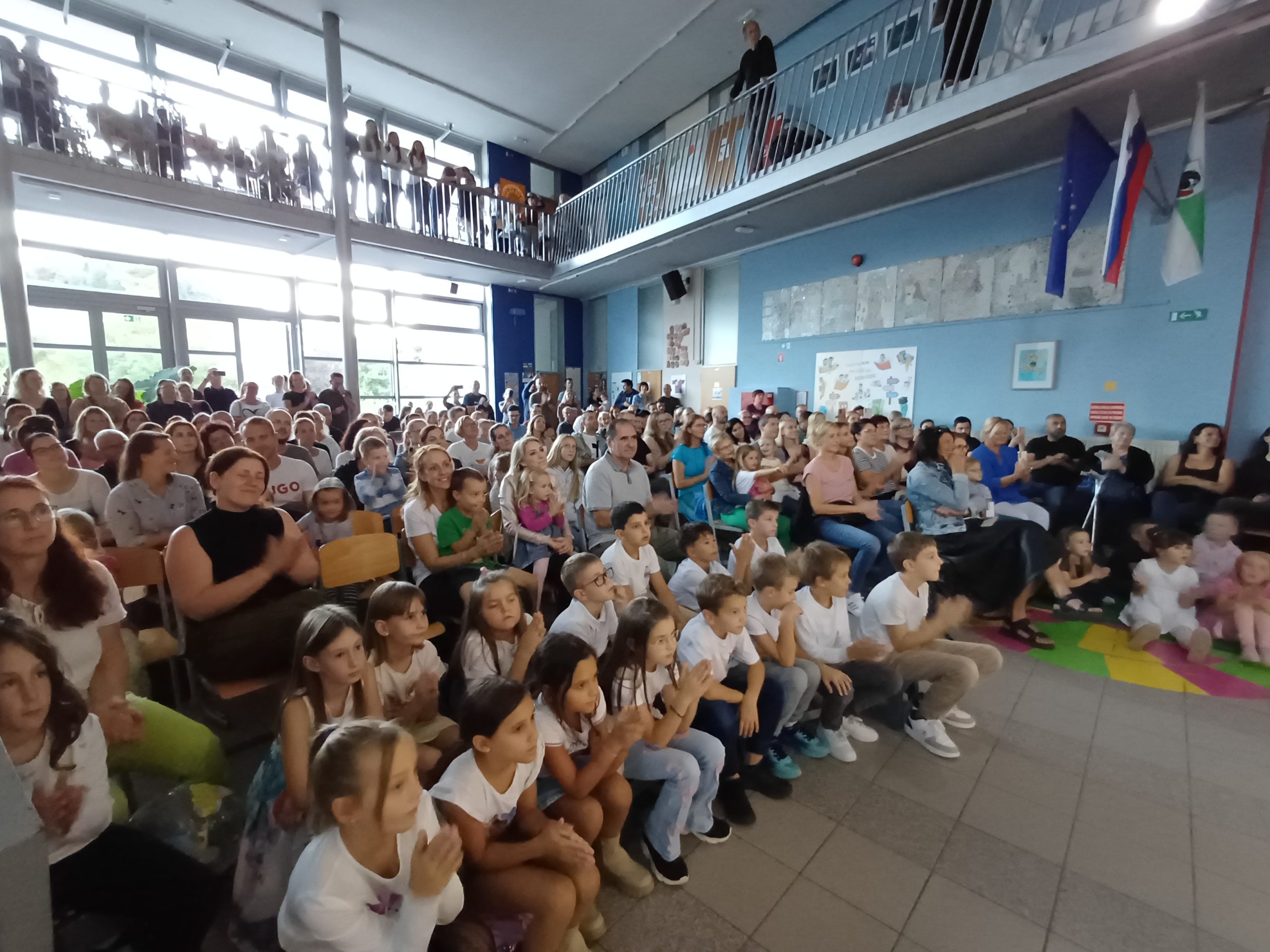 Zavedamo se namreč različnih situacij v svetu, ki pa jih ljudje lahko za hip izpustimo iz misli, kadar smo združeni v pesmi in seveda tudi v plesu, kar smo pričarali naši publiki v približno eni šolski uri. Naši učenci so ubrano peli v angleščini, španščini, italijanščini, hrvaščini, recitirali v našem maternem jeziku ter prikazali venček plesov iz različnih jezikovnih okolij.