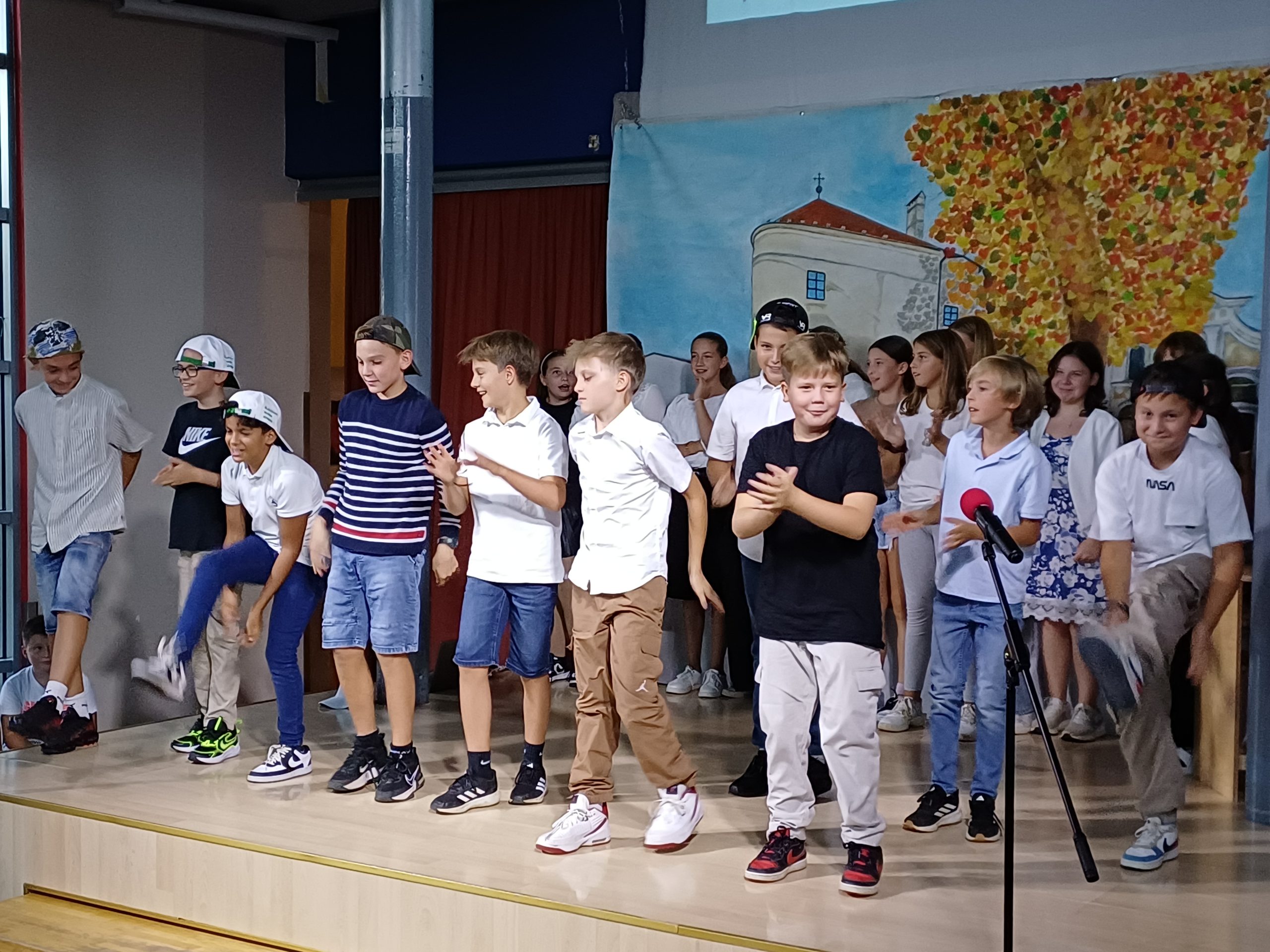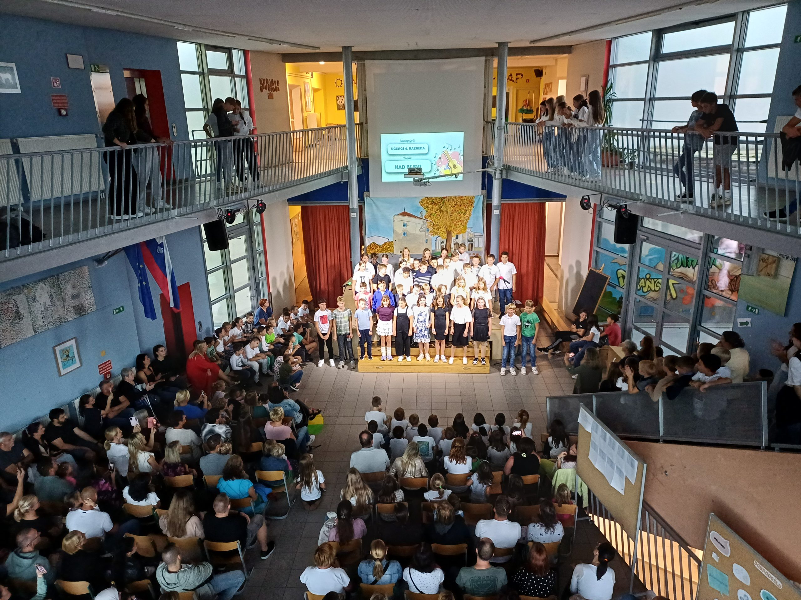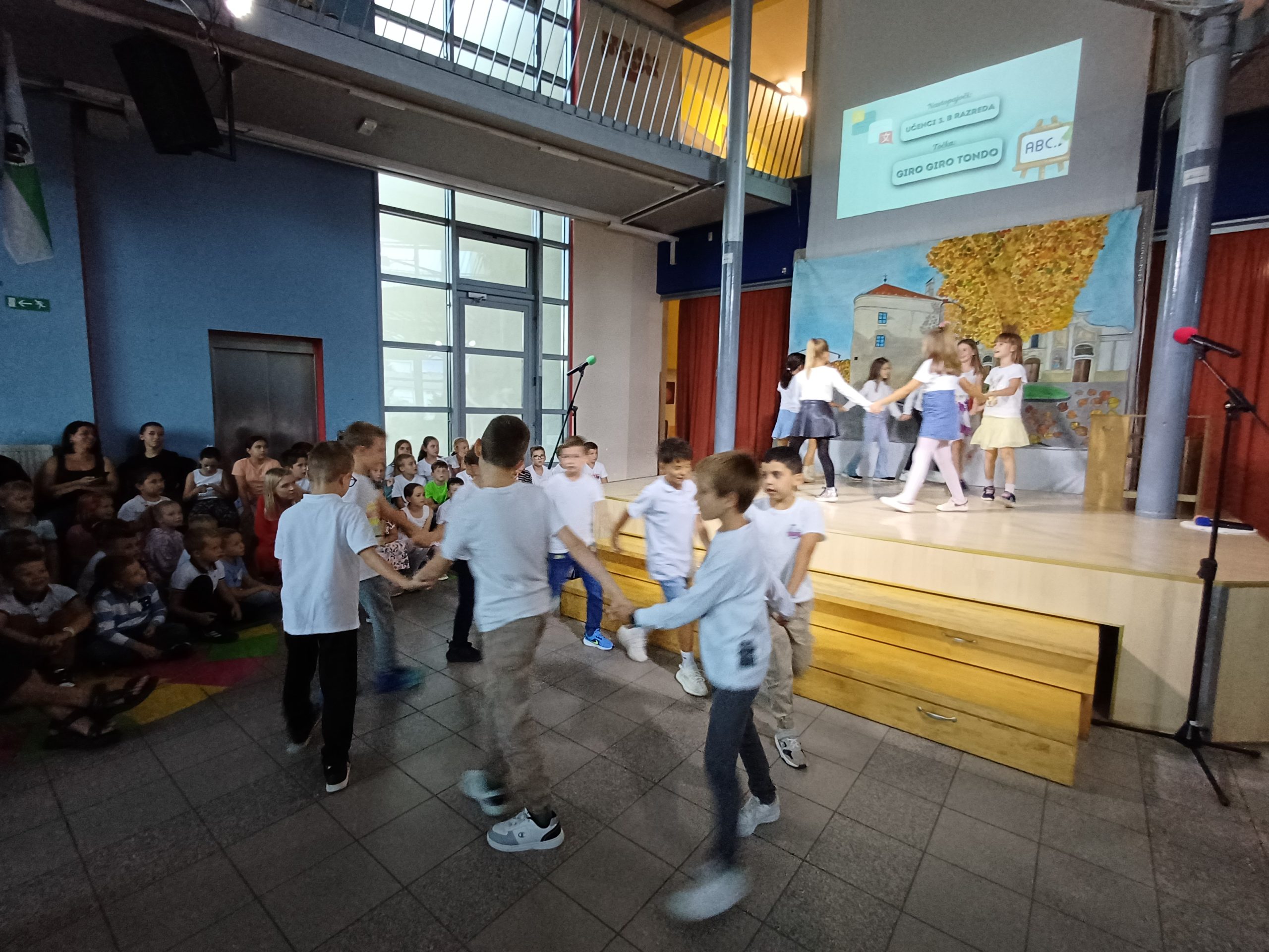 Zavedamo se namreč različnih situacij v svetu, ki pa jih ljudje lahko za hip izpustimo iz misli, kadar smo združeni v pesmi in seveda tudi v plesu, kar smo pričarali naši publiki v približno eni šolski uri. Naši učenci so ubrano peli v angleščini, španščini, italijanščini, hrvaščini, recitirali v našem maternem jeziku ter prikazali venček plesov iz različnih jezikovnih okolij.