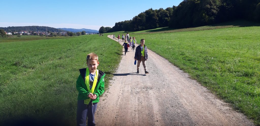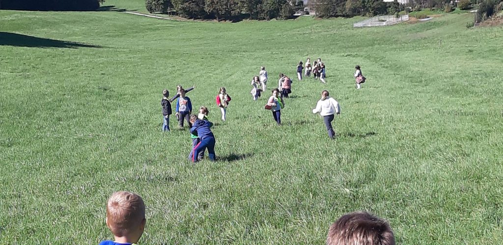 V petek, 3. 10. 2025 smo prvošolci 1. a in 1. b razreda pri RAP dejavnosti »Lahkih nog naokrog« odšli proti Selam. Bil je lep sončen dan. Uživali smo v gibalnih igrah na travi. Spoznali smo zdravilne rastline: rman, trpotec in črno deteljo. Med potjo nas je prijetno presenetil Maijev pes Pako, ki je bil veselo razigran. Nad njim smo bili navdušeni…